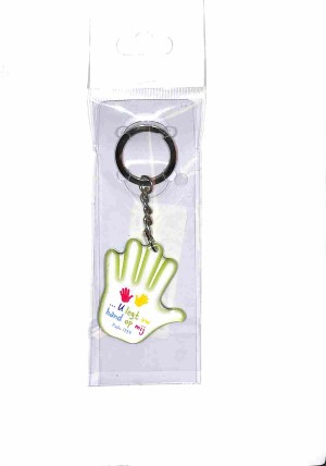 - Sleutelhanger hand met Bijbeltekst: U legt Uw hand op mij - Psalm 139:5