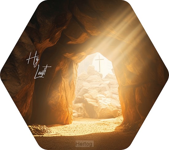 Hij leeft - tekstbord honingraat small