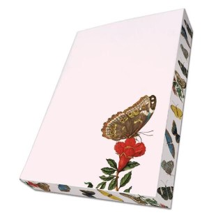 - A5 notitieboek voor een notitie en snelle schets. De rechterpagina's zijn gelinieerd, de linkerpagina's blanco. Rondom bedrukt, dus ook de zijkanten!