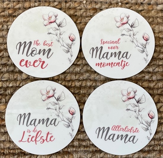 Elke onderzetter heeft een eigen opdruk: