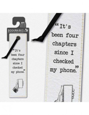 - Boekenlegger met opdruk: 'It's been four chapters since I checked my phone.'