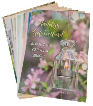 Kaarten bloemen/landschappen + Bijbeltekst - Hartelijk Gefeliciteerd