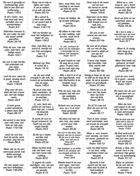 - Stickervel met 60 teksten uit de psalmen in de NBV vertaling.