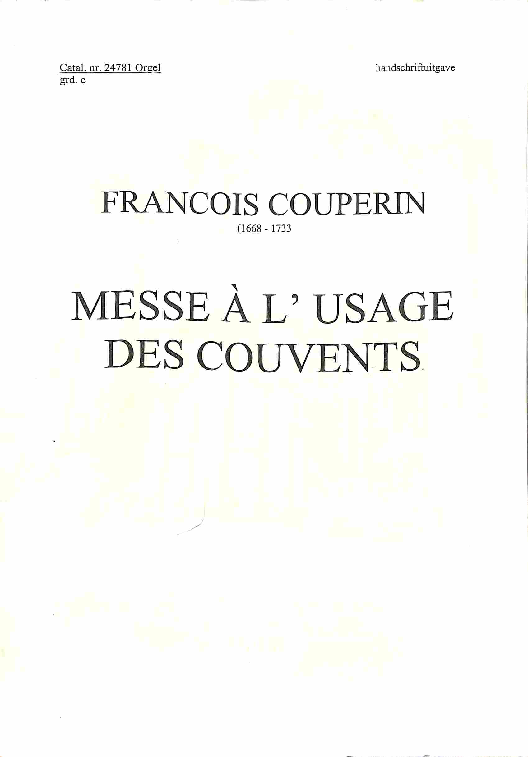 Messe à l'usage des couvents - Tweedehands Klavar